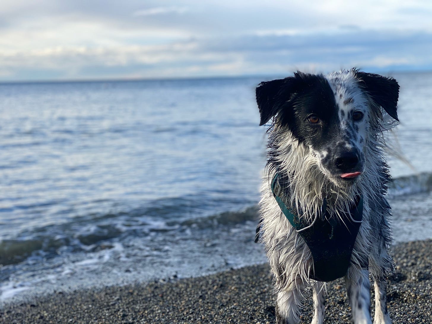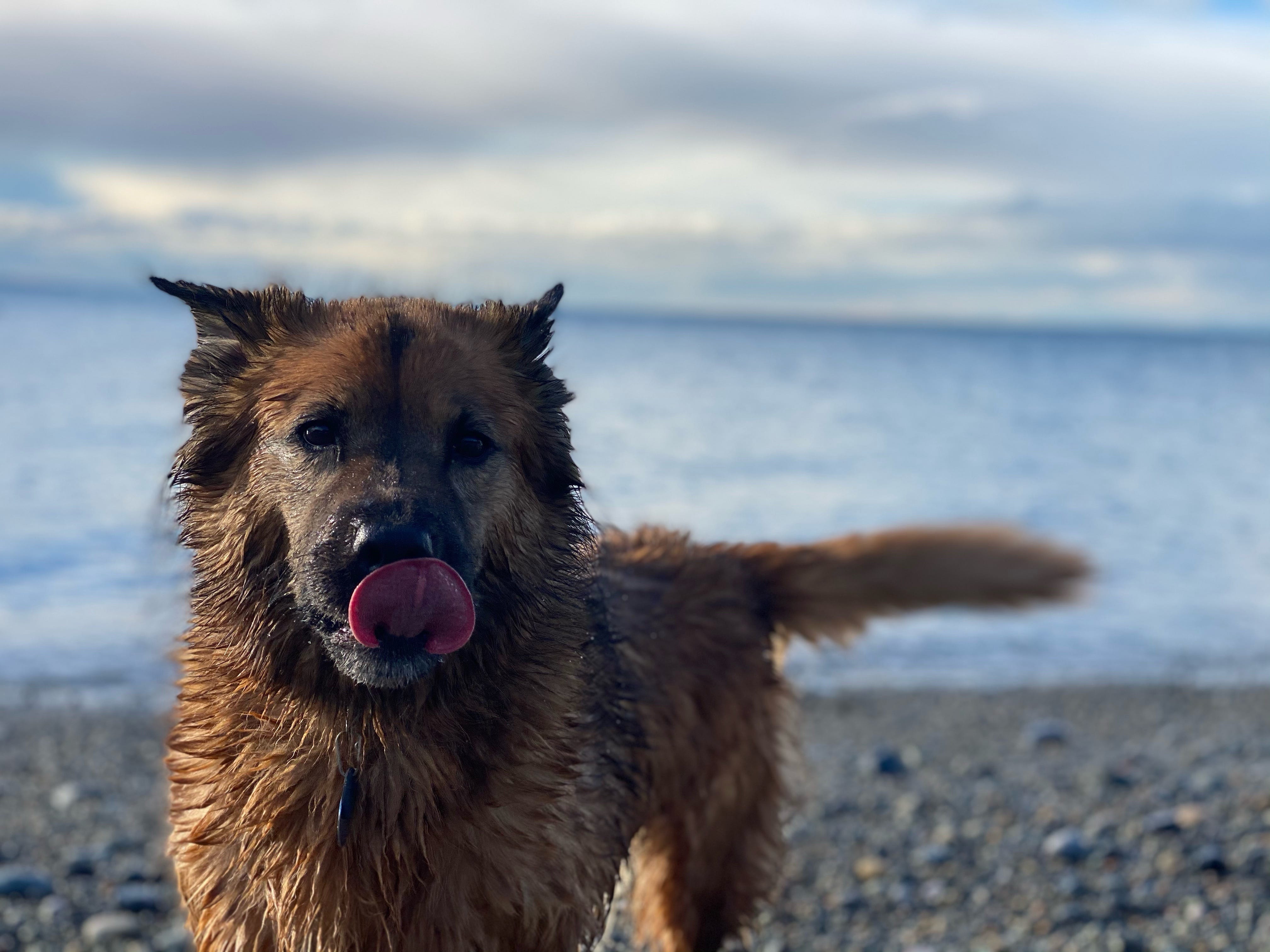 Steve, as part of a life-long project to needle Peggy, dropped his stick and began an attempt at tug-of-war. Latching on, the two wet beasts waltzed across the sand, kicking up small, smooth stones. Their tails whipped streams of salty water into the sky in a circle. Snarls echoed through the air. With some deft footwork, Peggy wrestled stick from Steve’s maw. They both paused. The air grew still. One wave lapped gently in the background, then another. Then Peggy set off. Steve, as always, gamely gave chase.